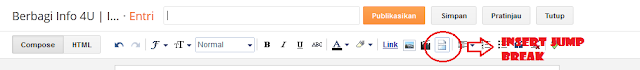 Sebenarnya untuk membuat tulisan / link read more pada blog sudah ada pada bawaan blogger saat menulis entri baru.